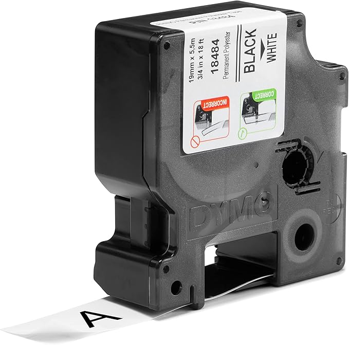 DYMO Rhino Industrial Permanent Polyester Labels, 3/4", Black Print on White Tape