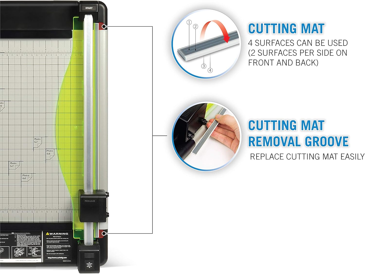• Blade length: 15", premium steel. Extra cutting mat, straight blade, and perforating blade included.