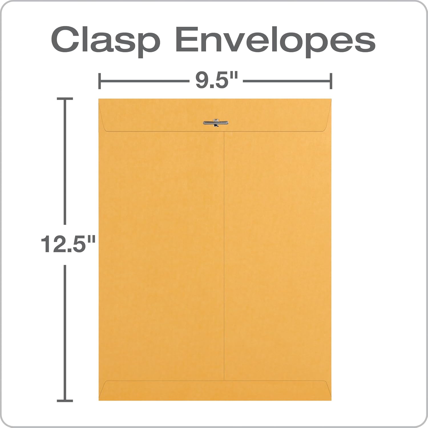 Quality Park, QUA37893, Gummed Kraft Clasp Envelopes, 100 / Box, Kraft, 9.5 x 12.5 Inches