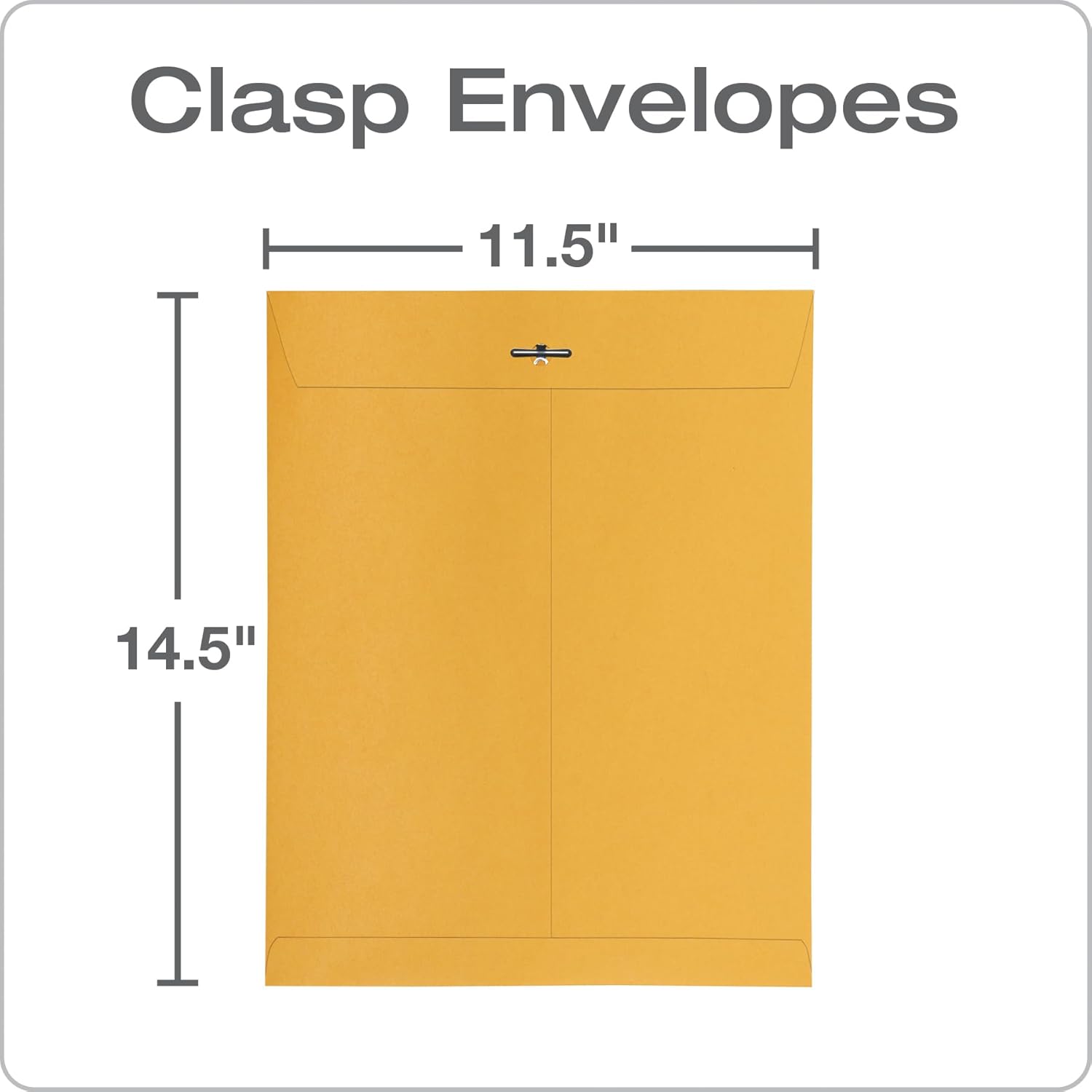 Quality Park 11-1/2" x 14-1/2" Clasp Envelopes, Brown Kraft, Gummed Flap, Heavy 32lb, 100/Box (QUA37805)