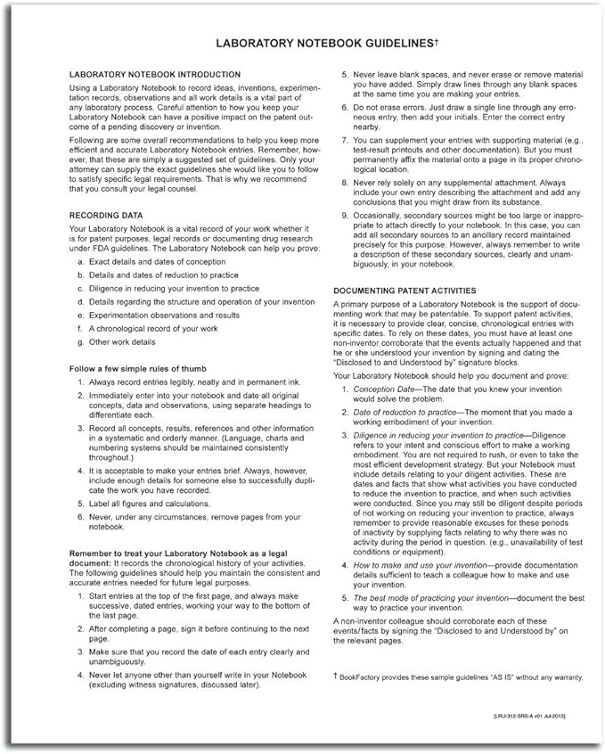 BookFactory Lab Notebook Laboratory Notebook - Professional Grade - 168 Pages, 8" x 10" (Ruled Format) Cover is Black and Burgundy Imitation Leather, Section Sewn Hardbound (LRU-168-SRS-A-LKMST1)