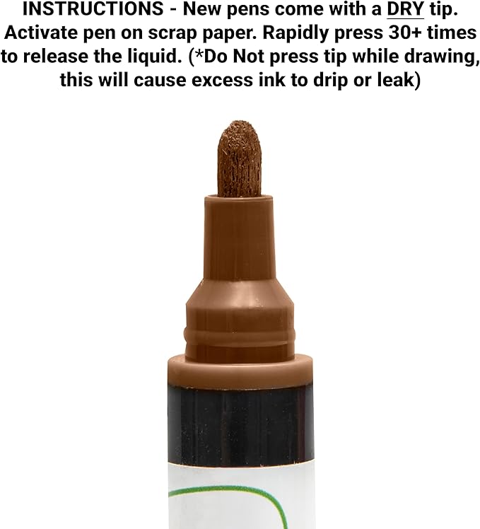 • INSTRUCTIONS TO START- Activate new pen on a scrap piece of paper. Gently press 20-30 times to release the liquid inside. (Do Not pump tip while writing, this will cause excess ink to drip or leak.)