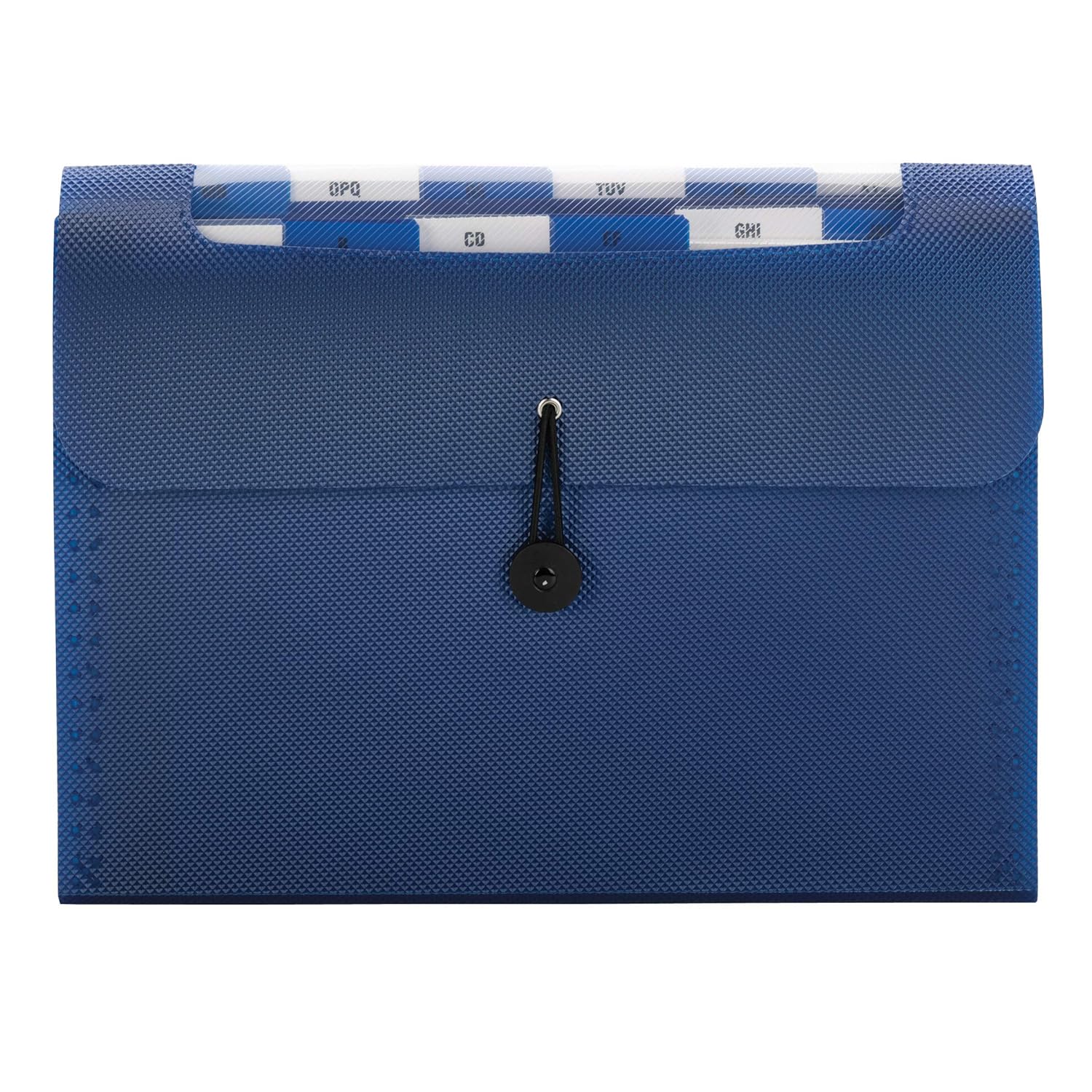 • Includes 1 letter size (13” W x 10” H) embossed poly organizer in navy blue with 12 pockets and indexed dividers to keep your documents sorted wherever work takes you
