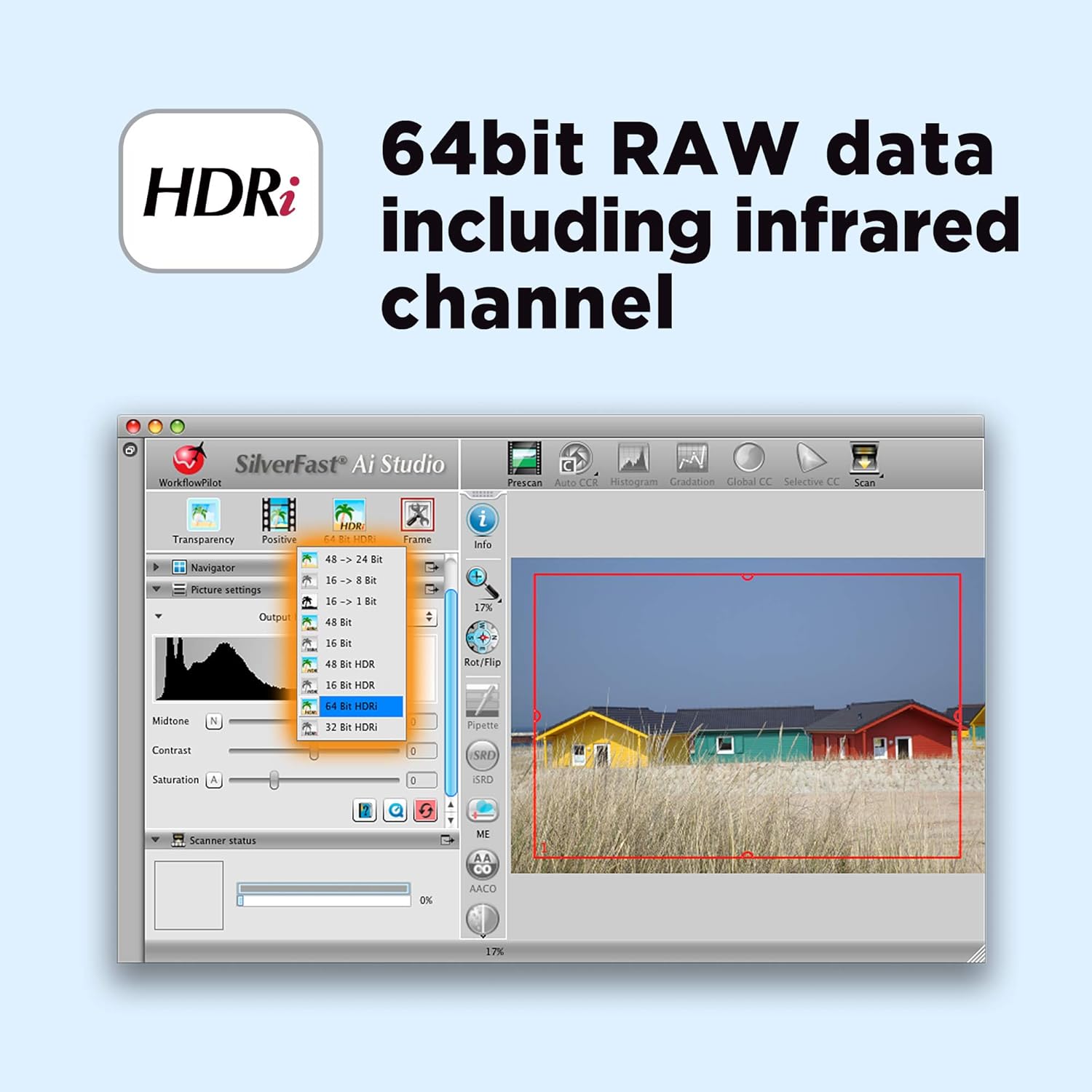 Plustek OpticFilm 8200i AI - 35mm Film & Slides Scanner. IT 8 Calibration Target + SilverFast Ai Studio 9, 7200 dpi Resolution 64Bit HDRi , Mac/PC