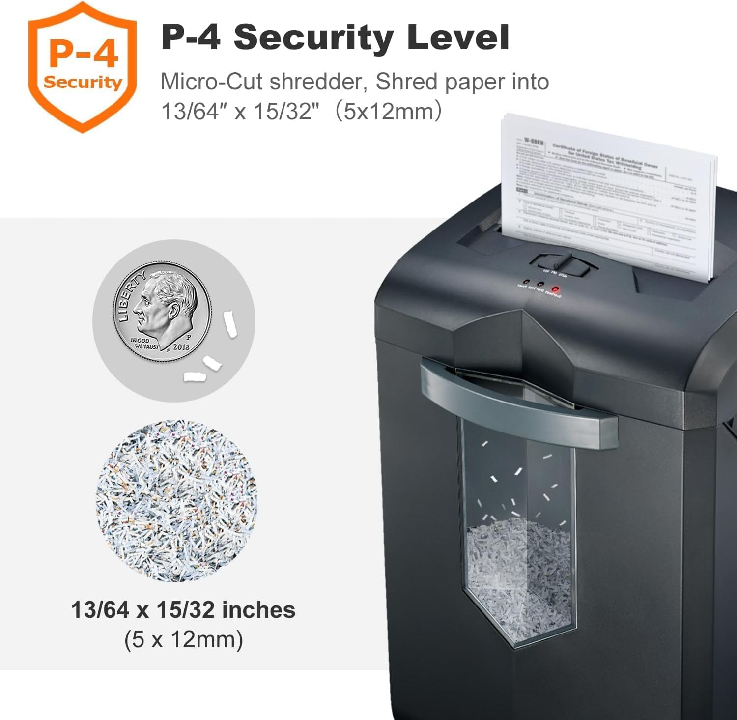 • 16-Sheet Shredding Capacity: The micro-cut shredder up to 16 sheets(Letter Size, 20lb) at a single pass, shreds paper into tiny particles measuring 13/64 x 25/64 inches (5 x 12mm); shreds credit cards and staples as well.