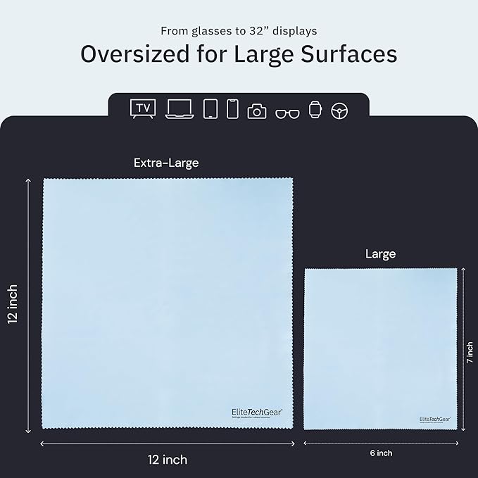 Elite Tech Gear Microfiber Cloth (Blue, 12'' x 12'' (Pack of 8))