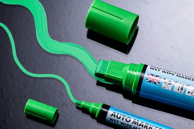 • BETTER THAN LIQUID CHALK- Specially made to write on vehicles Window, Windshield, Bike, Motorcycle Helmets, Tires, Mirror and all Non-Porous Undamaged Surfaces.