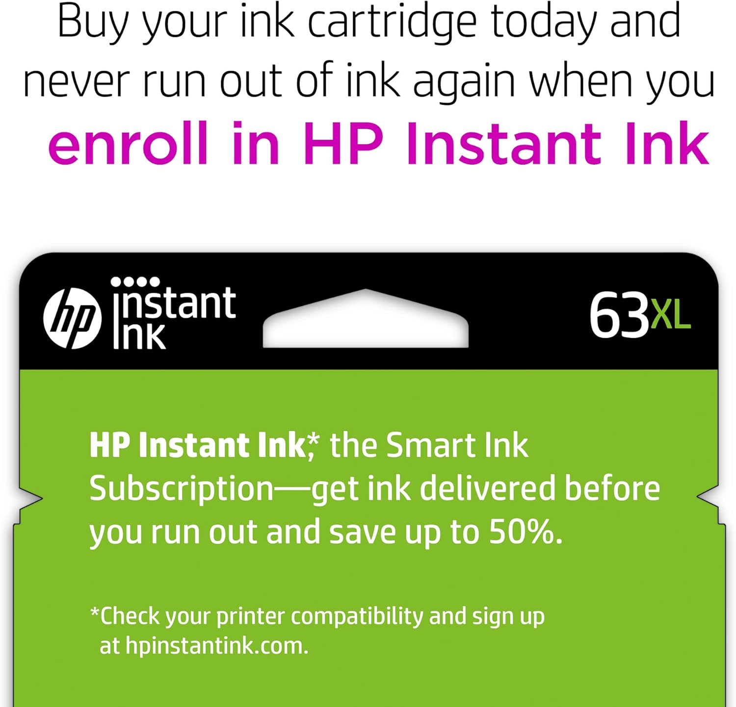 HP 63XL Tri-color High-yield Ink Cartridge | Works with Printer Series: DeskJet 1112, 2130, 3630; ENVY 4510, 4520; OfficeJet 3830, 4650, 5200 | Eligible for Instant Ink | F6U63AN