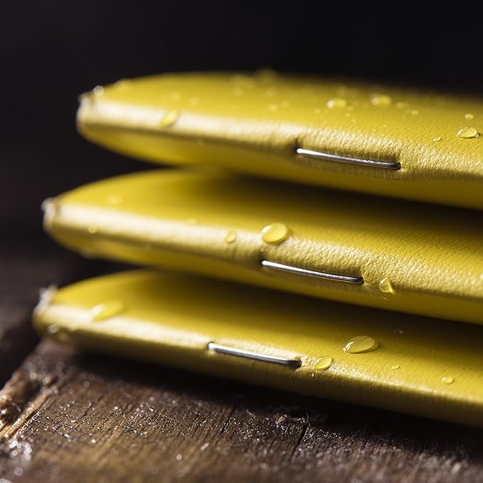• WEATHERPROOF PAPER: 48 pages / 24 sheets per pocket notepad. All-weather paper won’t turn to mush when wet and will repel water, sweat, grease, mud, and even survive the accidental laundry mishap. Make sure your stapled notebook stays RIGHT in the Rain.