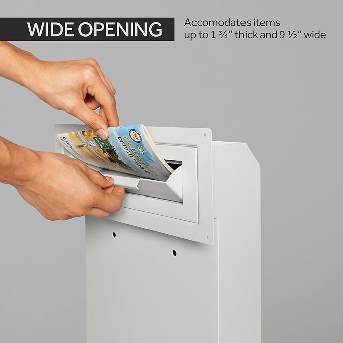 • LARGE CAPACITY - Features a precisely designed drop slot opening that can clear items up to 9-1/2" wide by 1-3/4” thick. With a generous interior capacity of 505 cubic inches, this secure drop box provides plenty of space perfect for both residential and commercial use.