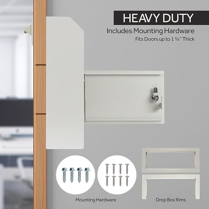 • PRACTICAL DESIGN - The Durabox Through-the-Door Mailbox is expertly designed for seamless integration into doors, offering a secure and convenient mail drop solution. Featuring a simple rectangular cutout installation, this drop box allows you to deposit items from one side while securely retrieving them from the locking compartment on the other.