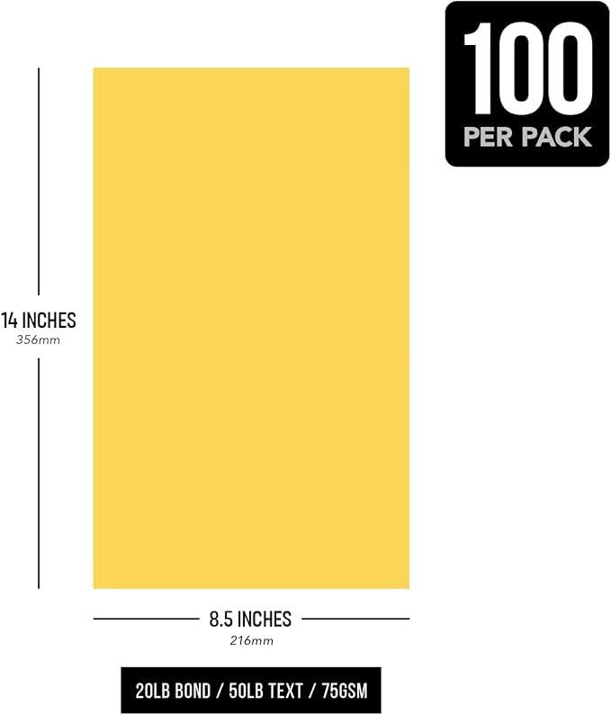 Goldenrod Pastel Colored Menu Paper - 8.5" x 14" (Legal Size) - for Documents, Announcements, Menus Arts and Crafts | Bulk Pack of 100 Sheets
