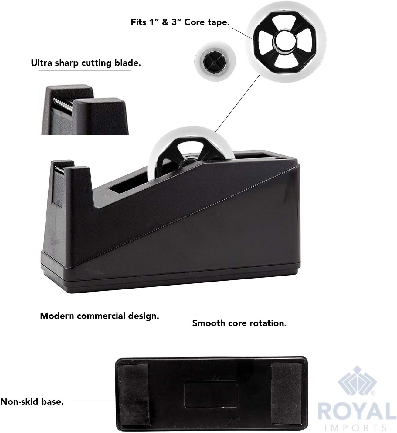 • ECONOMICAL & RELIABLE: Classic Black Desktop Tape Dispensers by Royal Imports is an economical and reliable item. You will be happy to have this item at your home or office. Consider yourself lucky to get such a reliable piece at an affordable cost. ::: ROLL TAPE NOT INCLUDED.
