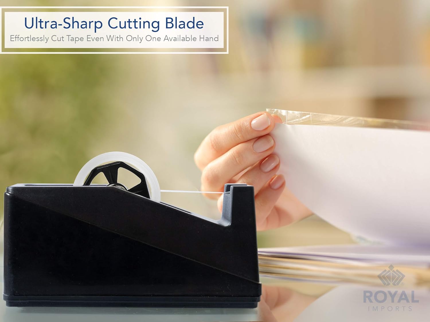 • ROYAL IMPORTS DESKTOP TAPE DISPENSER: An ultimate item for multi-purpose uses. Royal Imports desktop tape dispenser is a handy item that can be placed anywhere. It can be used for sealing envelopes attaching pieces or decorating your desk by conveniently taping variety of decorative items. ****Suitable tape width: Up to 1-Inch****