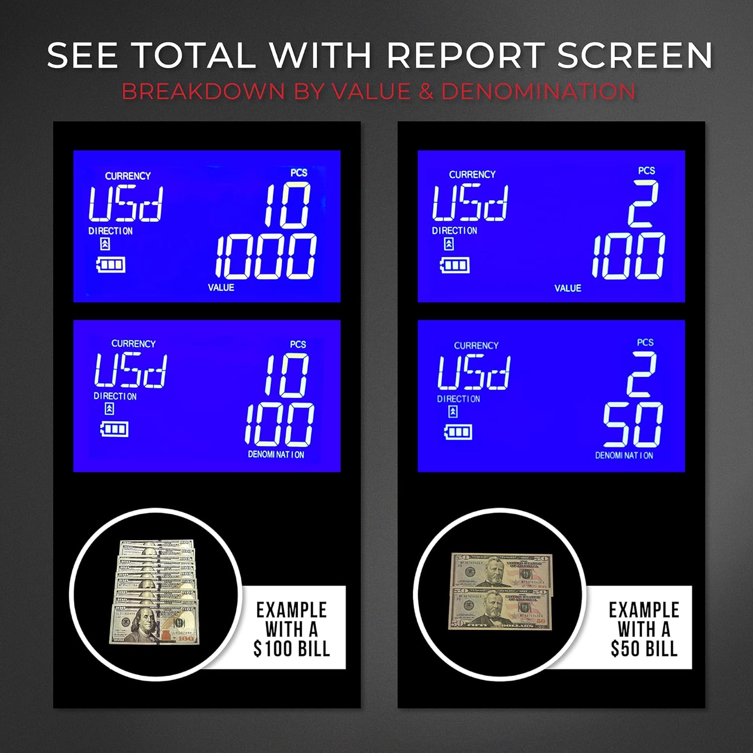 • Easy-to-read digital display clearly reports pass or fail for checked bills along with their denomination