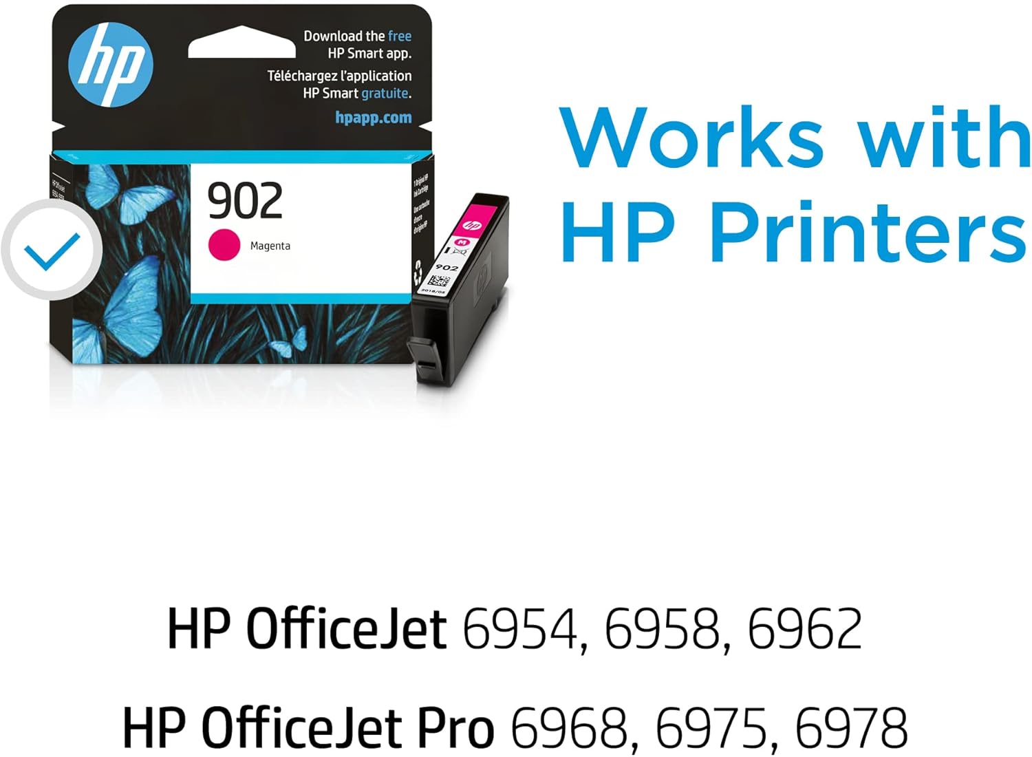 HP 902 Magenta Ink Cartridge | Works with HP OfficeJet 6950, 6960 Series, HP OfficeJet Pro 6960, 6970 Series | Eligible for Instant Ink | T6L90AN