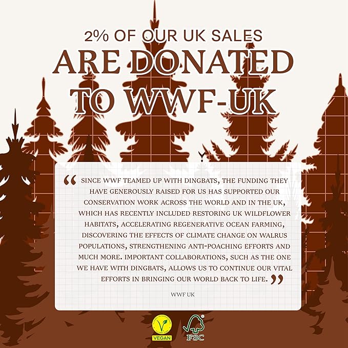 • SUSTAINABLY SOURCED, ENVIRONMENTALLY CONSCIOUS: Made from recyclable materials and FSC certified paper, our notebooks are Vegan Certified. Dingbats* Notebooks Ltd donates 2% of UK sales to WWF-UK, supporting environmental conservation.