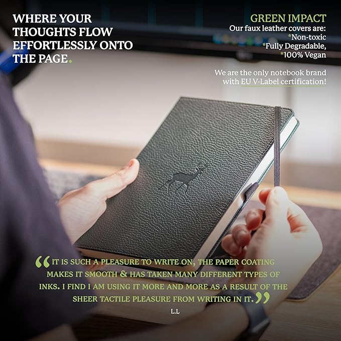 • SUSTAINABLY SOURCED, ENVIRONMENTALLY CONSCIOUS: Made from recyclable materials and FSC certified paper, our notebooks are Vegan Certified. Dingbats* Notebooks Ltd donates 2% of UK sales to WWF-UK, supporting environmental conservation.