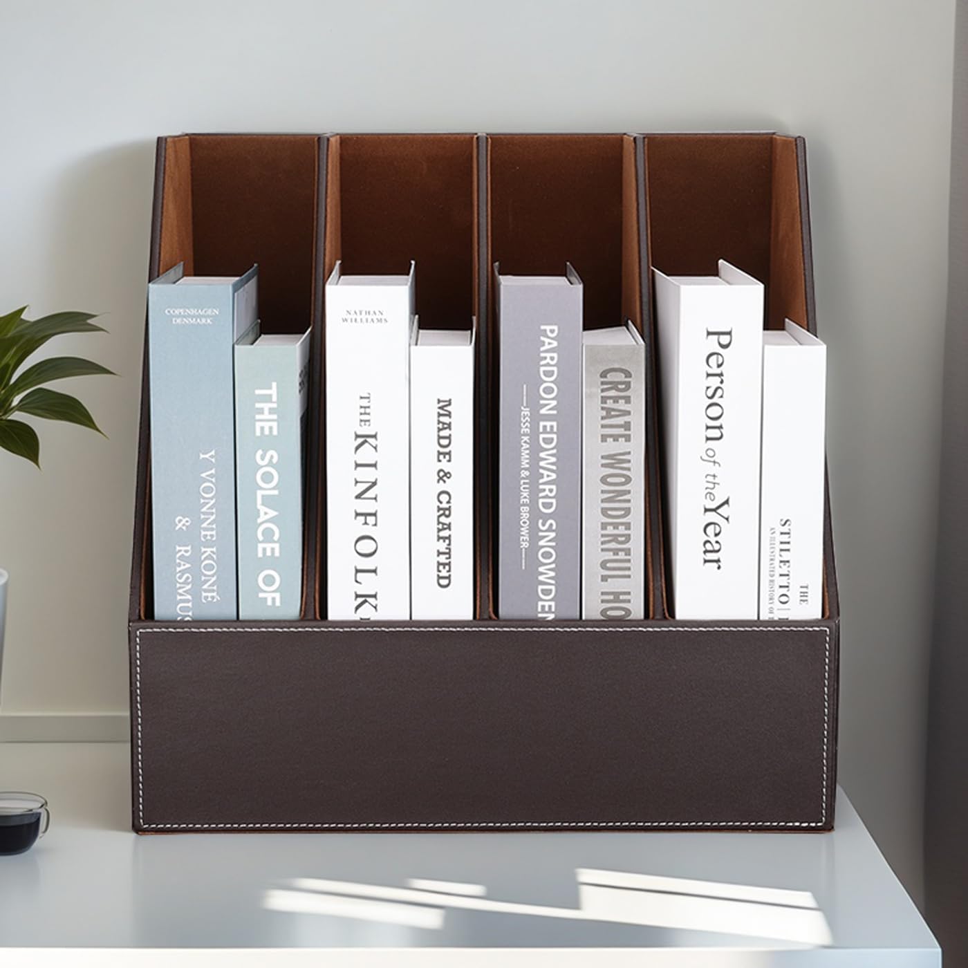 KINGFOM 4-Slot Wood Leather Document Files Holder Rack Stand Desk Files Organizer Papers Collection Cabinet (4 slot brown)