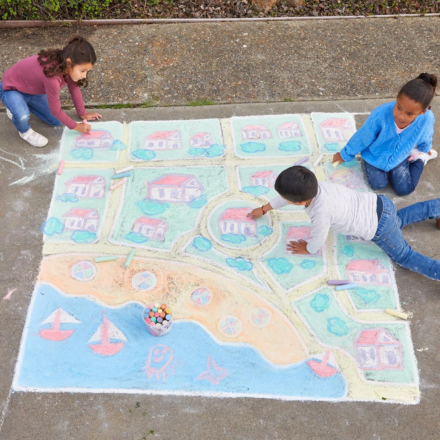 Colorations Washable Sidewalk Chalk in Storage Bucket, 20 Pieces, 8 Assorted Colors, Driveway Chalk for Kids, Oudoor Chalk, Kids Dustless Chalk, Homeschool, Home School Use