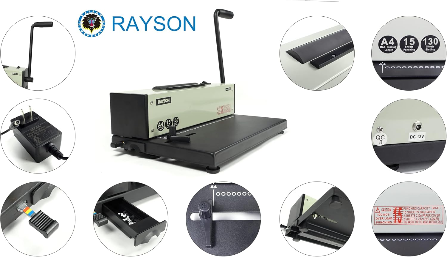 • The Rayson PD-1501 is a manual punch operation with electric coil inserter coil binding machine.