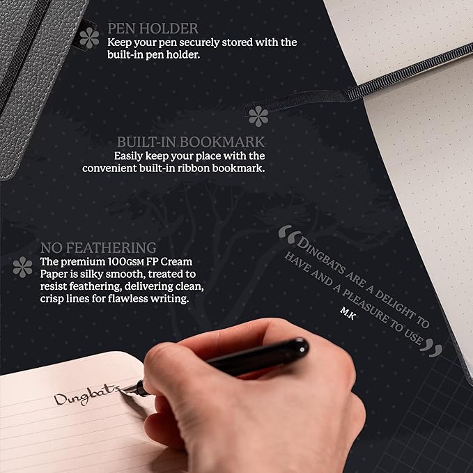 • SUSTAINABLY SOURCED, ENVIRONMENTALLY CONSCIOUS: Made from recyclable materials and FSC certified paper, our notebooks are Vegan Certified. Dingbats* Notebooks Ltd donates 2% of UK sales to WWF-UK, supporting environmental conservation.