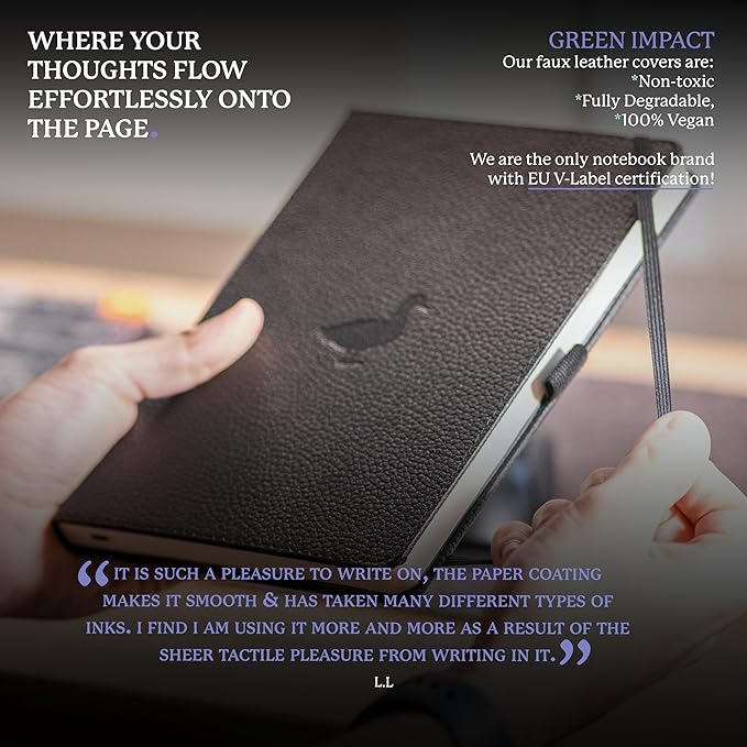 • SUSTAINABLY SOURCED, ENVIRONMENTALLY CONSCIOUS: Made from recyclable materials and FSC certified paper, our notebooks are Vegan Certified. Dingbats* Notebooks Ltd donates 2% of UK sales to WWF-UK, supporting environmental conservation.