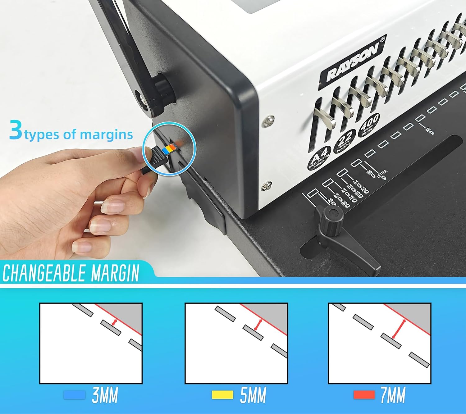 • 【High Capacity Punching & Binding】Punch up to 22 sheets (A4, letter size, or below) of 80gsm (20lb) paper at once and bind up to 400 sheets with 2" (51mm) comb spines