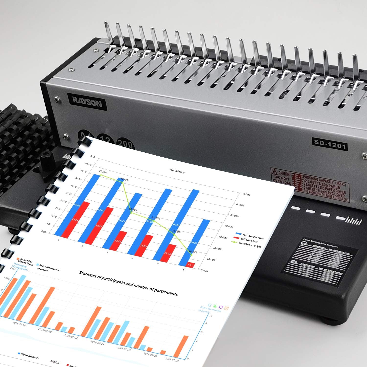 Rayson SD-1201 Binding Machine Punching and Binding with Combs Set - 21 Hole/ 200 Sheets Paper Comb Binder