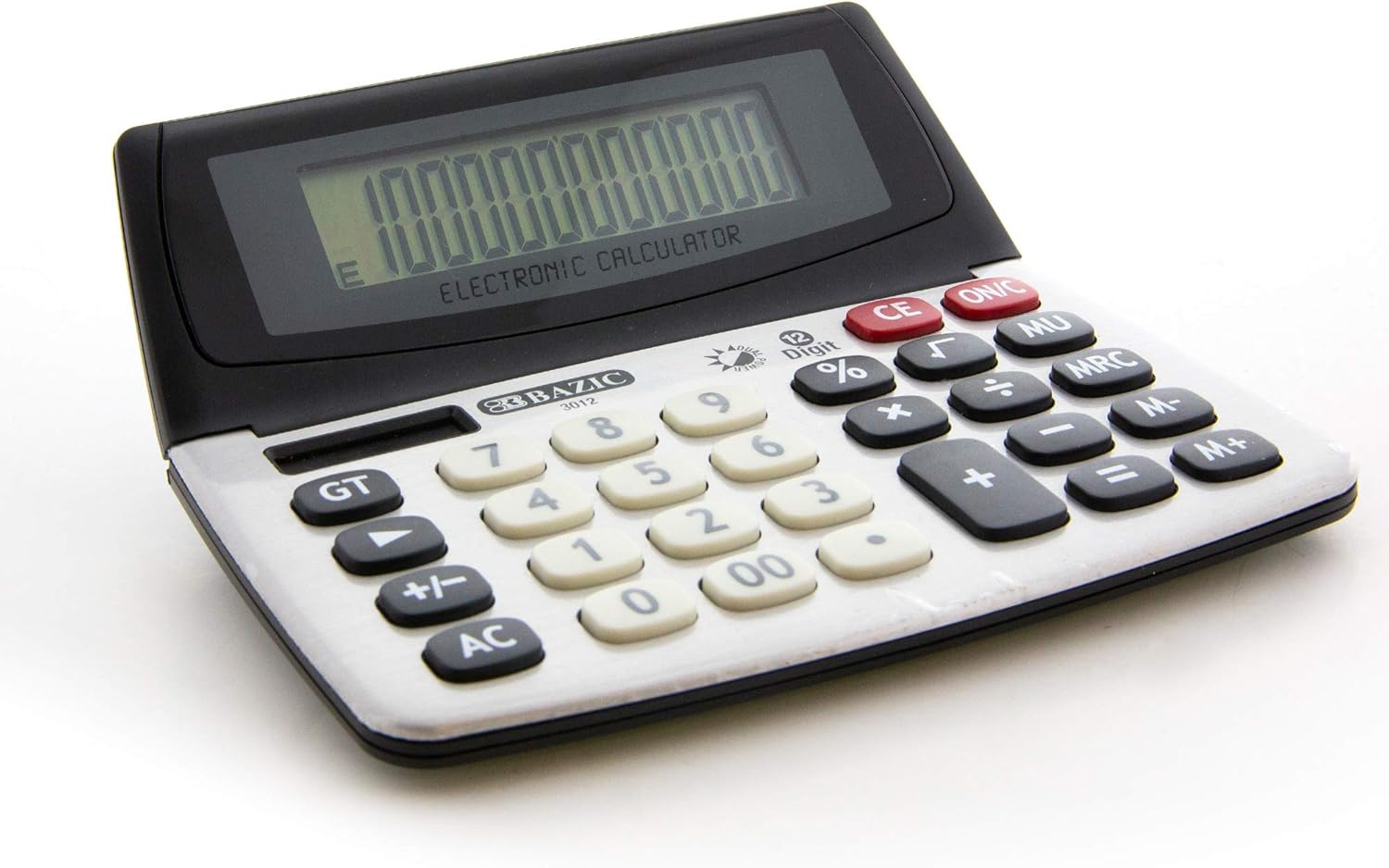 BAZIC 12-Digit Dual Power Desktop Calculator with Adjustable Display (3012)