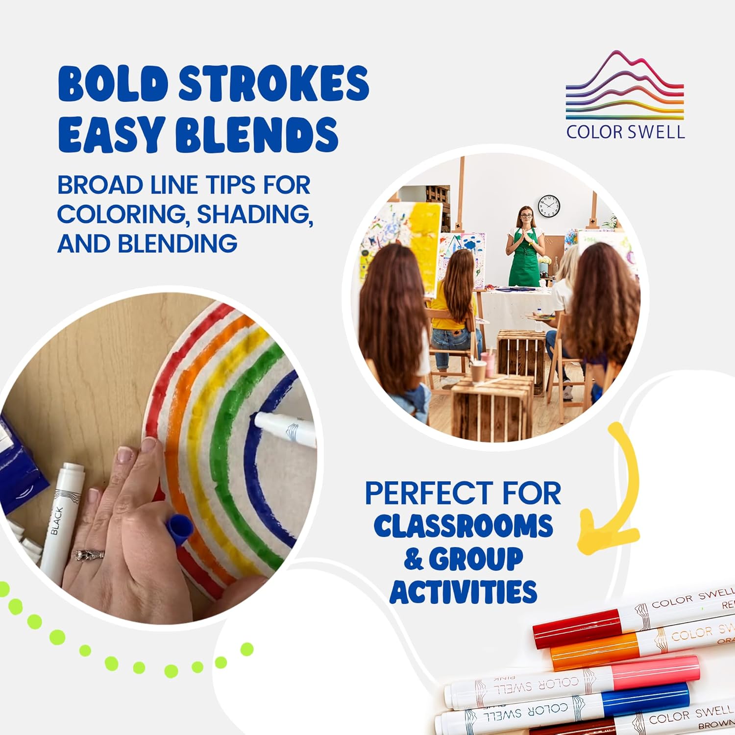 • STUDENT QUALITY FOR UNLEASHING YOUR CREATIVITY - All bulk broadline washable marker classroom packs are designed with broad line tips that offer smooth consistency that is great for your style of text, blending, shading, coloring, and other creative drawing techniques