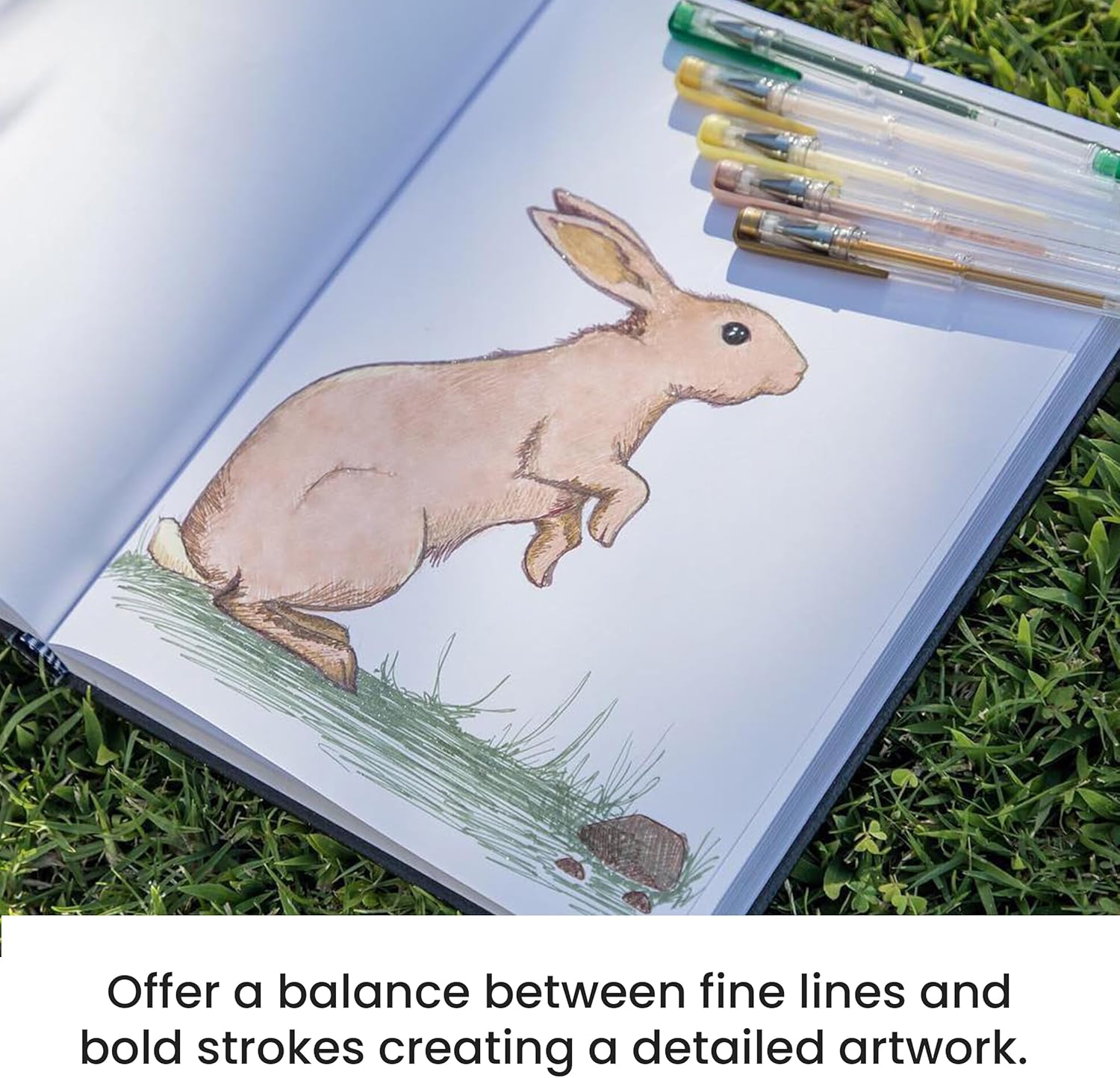 • Smooth Glide & Precision - Enjoy effortless writing with 0.8-1.0mm medium tips, designed for supreme control and consistent ink flow. Achieve crisp lines using our colored gel pens for notes or delicate shading for detailed illustrations.