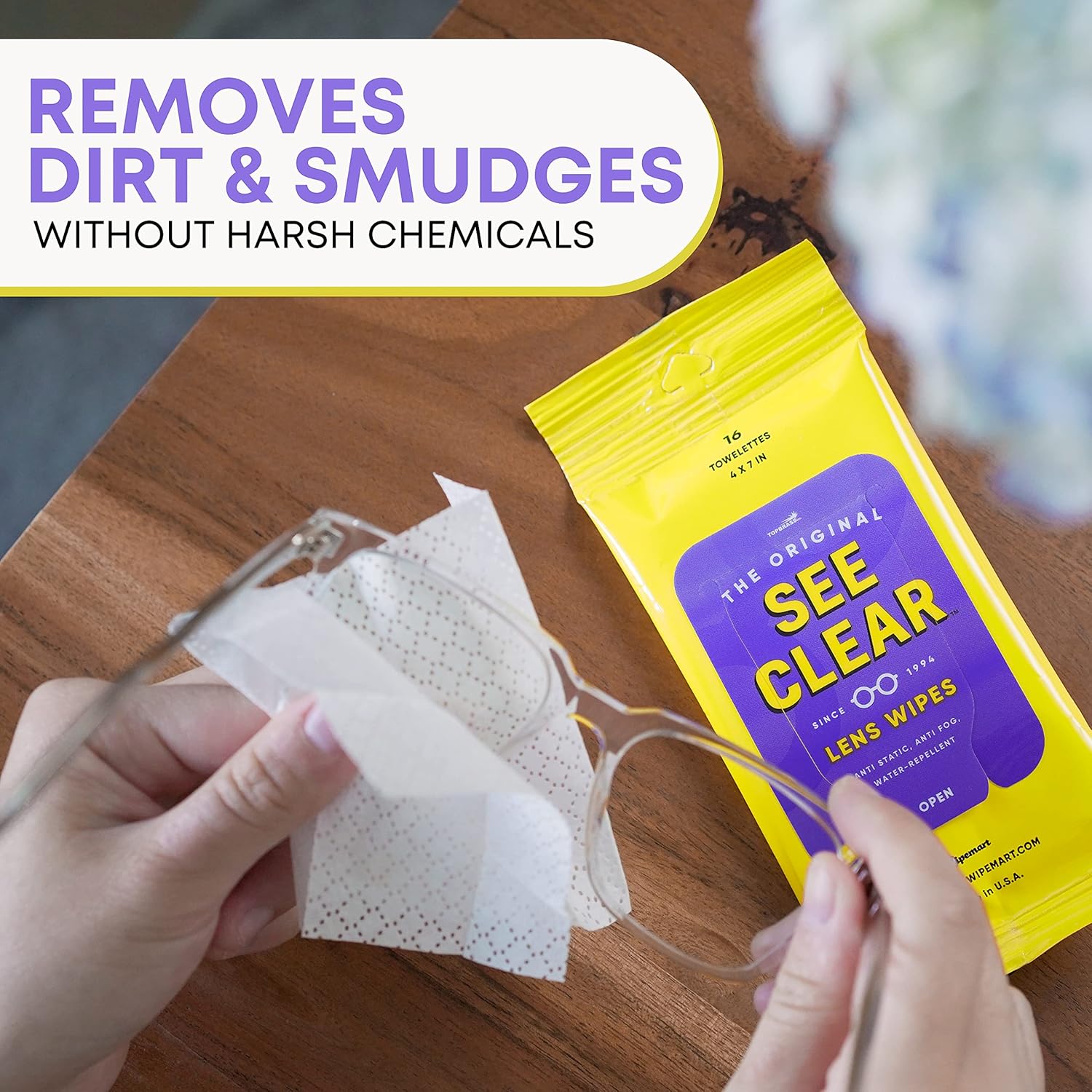 • SEE CLEAR SCREEN & EYEGLASS CLEANING: See clear with See Clear cleansing wipes! Our lens wipes are the ideal solution for cleaning eyeglasses, sunglasses, tablet and phone screens, smart watch displays, computer screens and more. Safe glass cleaning wipes for all lenses and high end optics, including AR lenses, coated lenses, and camera lenses.