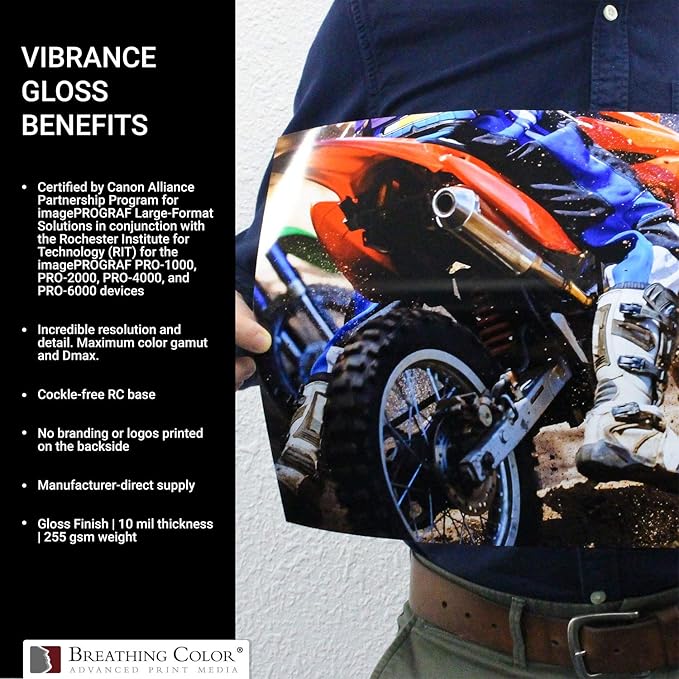 Vibrance Gloss Photo Printer Paper 10 mil 255 gsm Glossy Finish Premium Photo Paper Roll on 3inch Core 17 inches x 100 feet Works with Most Inkjet Printers Including Professional Makes and Models