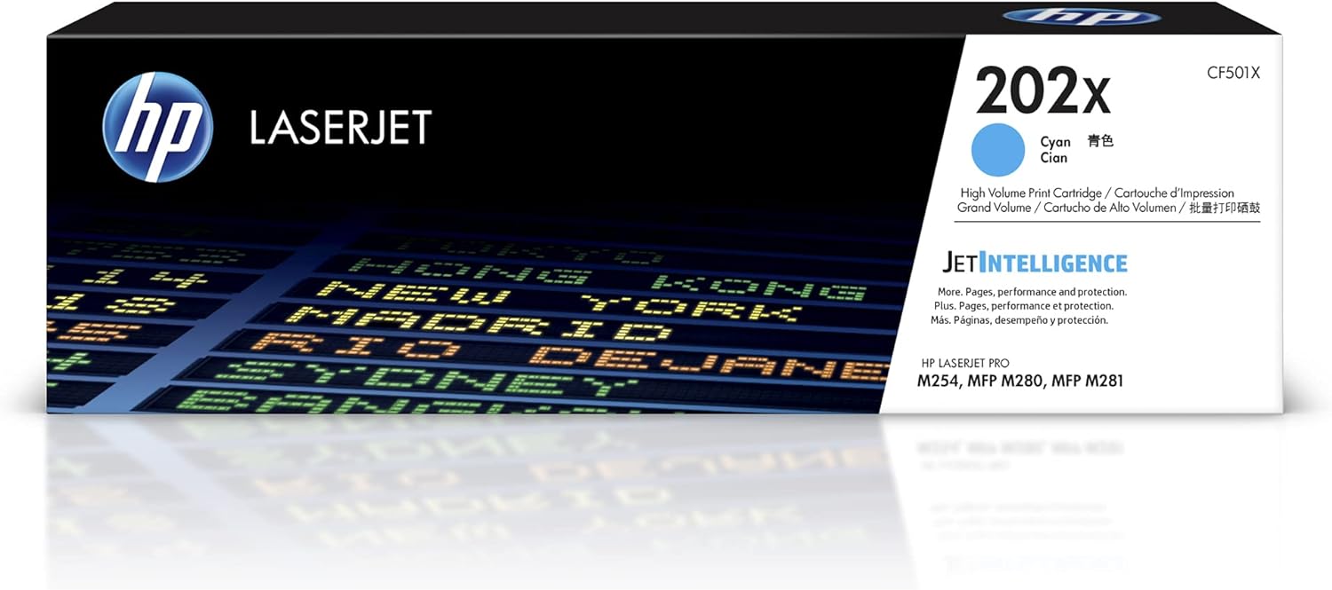 HP 202X Cyan High-yield Toner Cartridge | Works with HP Color LaserJet Pro M254, HP Color LaserJet Pro MFP M281 Series | CF501X