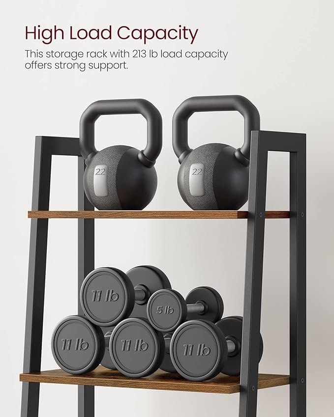 VASAGLE Ladder Shelf, 4-Tier Bookshelf, Storage Rack, Bookcase with Steel Frame, for Living Room, Home Office, Kitchen, Bedroom, Industrial Style, Rustic Brown and Ink Black ULLS44X