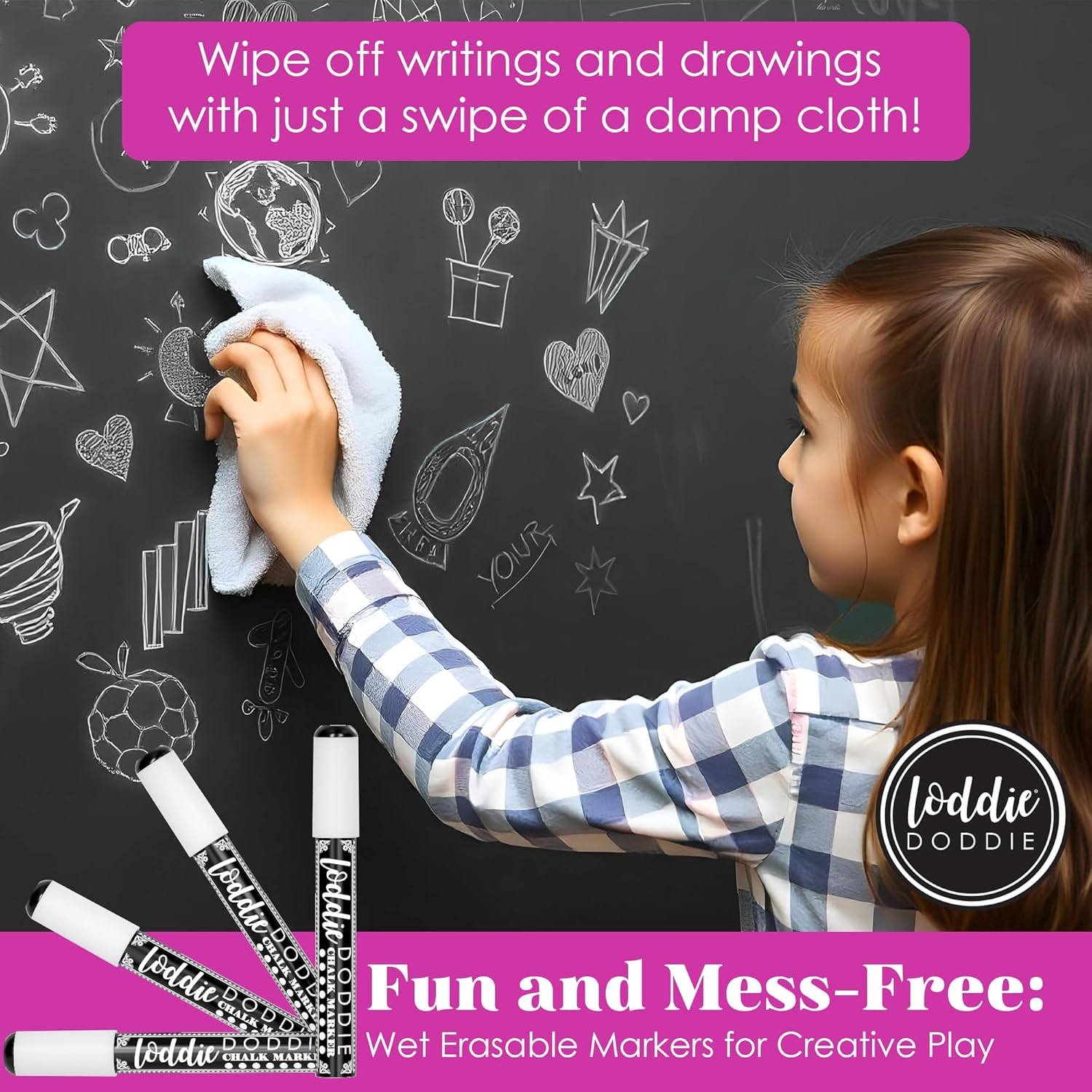 • Easy Cleanup: Loddie Doddie chalk markers white inked wipe off easily with a damp cloth—making mess-free decoration a breeze. These white chalkboard markers are perfect for all your holiday decorating needs. This white chalk pen pack works on blackboards and windows