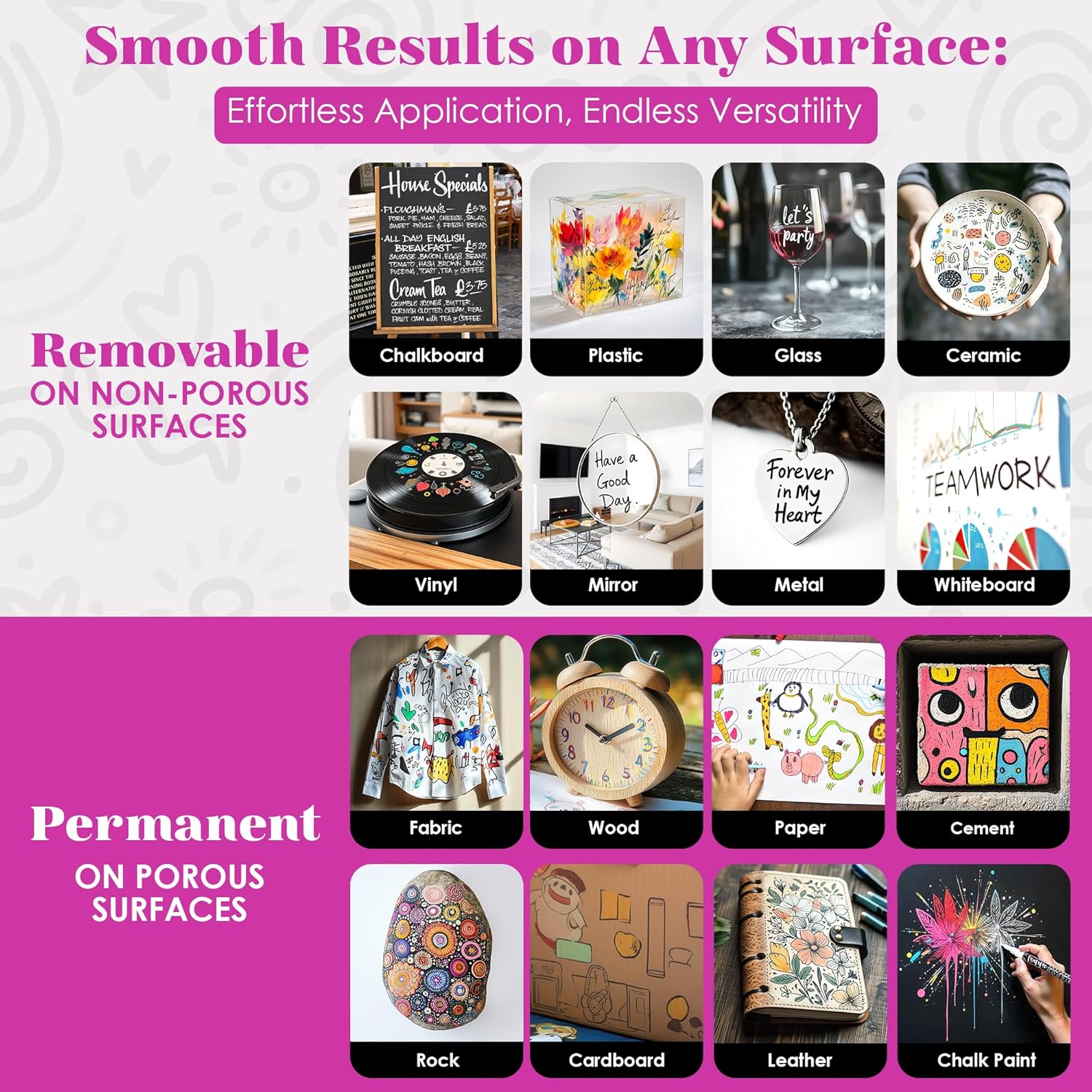 • Kid-Friendly Fun: Let the kids unleash their creativity with this 4-pack of white chalk markers for blackboard under your watchful eye. These chalkboard markers make winter break a fun, mess-free adventure on both blackboards and glass. These liquid chalk markers white inked are ideal for window marker projects too