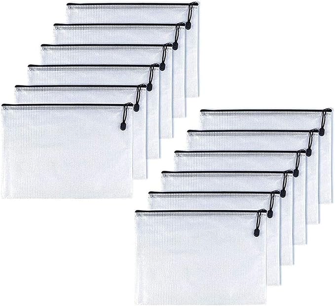 Oaimyy-B4(11.5"x 15",12 Pcs),Plastic Mesh Zipper Pouch Document Folders Bag & Zipper-Waterproof Zip File Folders for School Office Supplies, Travel,Puzzles Games Organizing Storage-Black