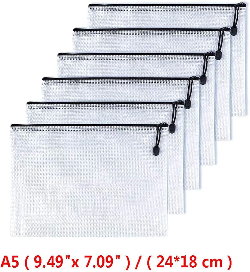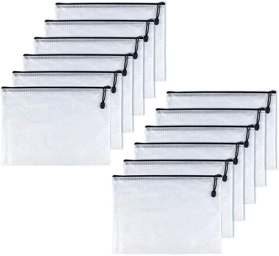Oaimyy-A5(9"x 7",12 Pcs),Plastic Mesh Zipper Pouch Document Folders Bag & Zip File Folders for School Office Supplies, Travel,Puzzles Games Organizing Storage-Black