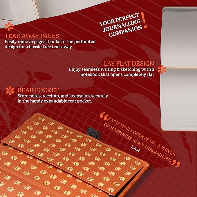 • CRAFTED FOR QUALITY: A hardcover PU vegan leather notebook with micro-perforated cream 100gsm pages. Features an elastic closure, inner pocket, built-in bookmark, and pen holder for organized, convenient, and stylish note-taking anywhere.