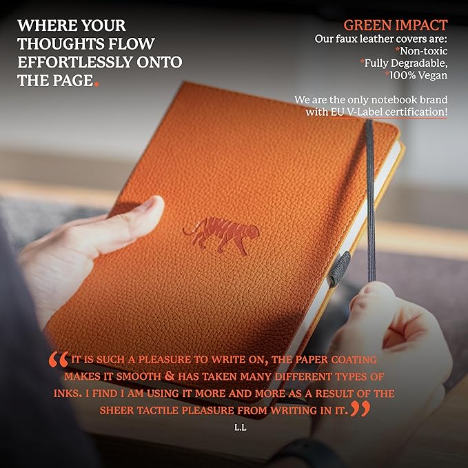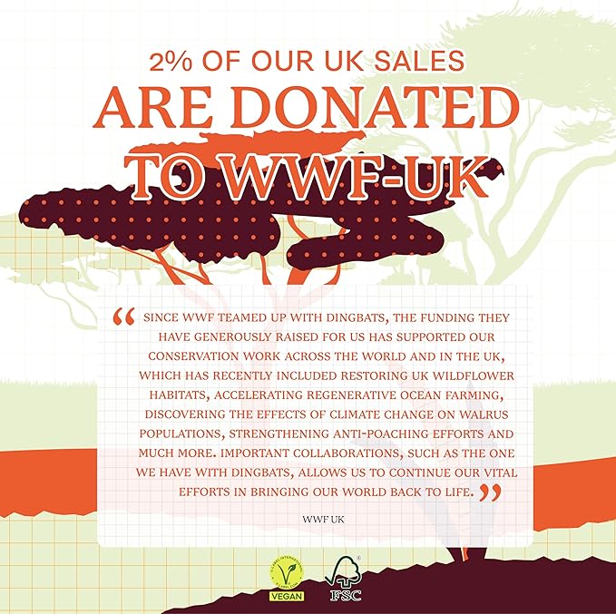 • SUSTAINABLY SOURCED, ENVIRONMENTALLY CONSCIOUS: Made from recyclable materials and FSC certified paper, our notebooks are Vegan Certified. Dingbats* Notebooks Ltd donates 2% of UK sales to WWF-UK, supporting environmental conservation.