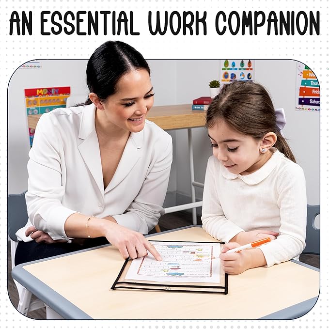 • Classroom Hero - Our clear dry erase pockets are ideal for holding worksheets, allowing students to write and wipe away answers, promoting active participation and reusability.