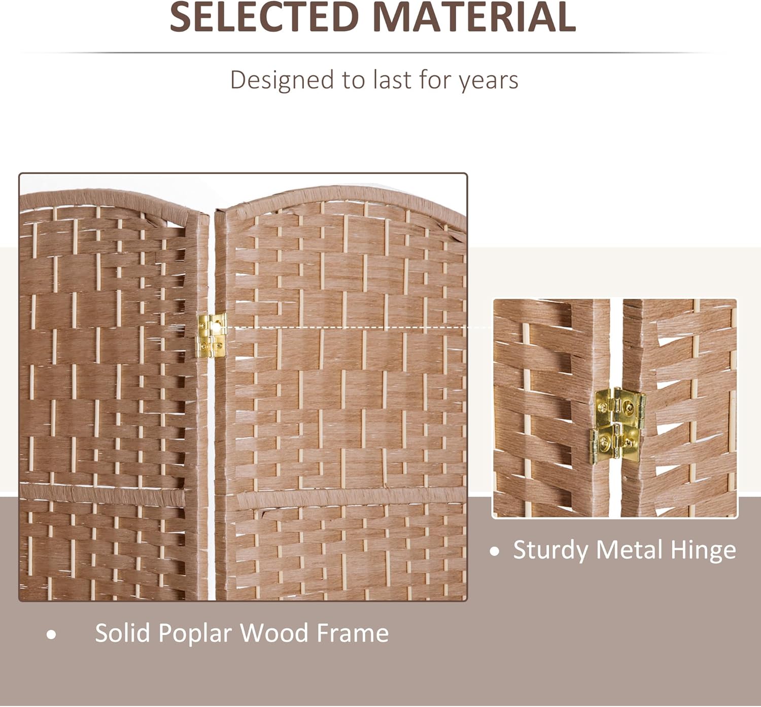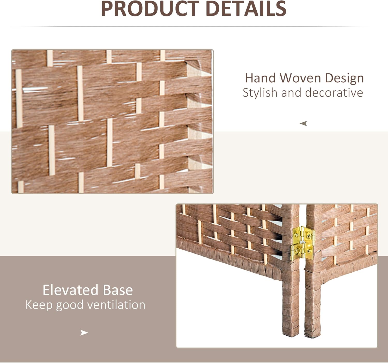 HOMCOM Room Divider, 3 Panel Folding Privacy Screen, 6FT Tall Portable Wicker Weave Partition Wall Divider for Bedroom, Home Office, Natural