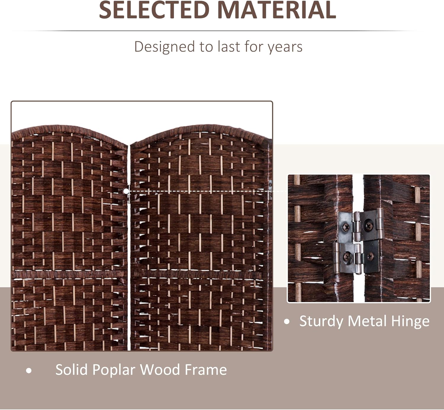 HOMCOM Room Divider 4 Panels Folding Privacy Screen 6FT Tall Portable Wicker Weave Partition Wall Divider for Bedroom Home Office, Brown