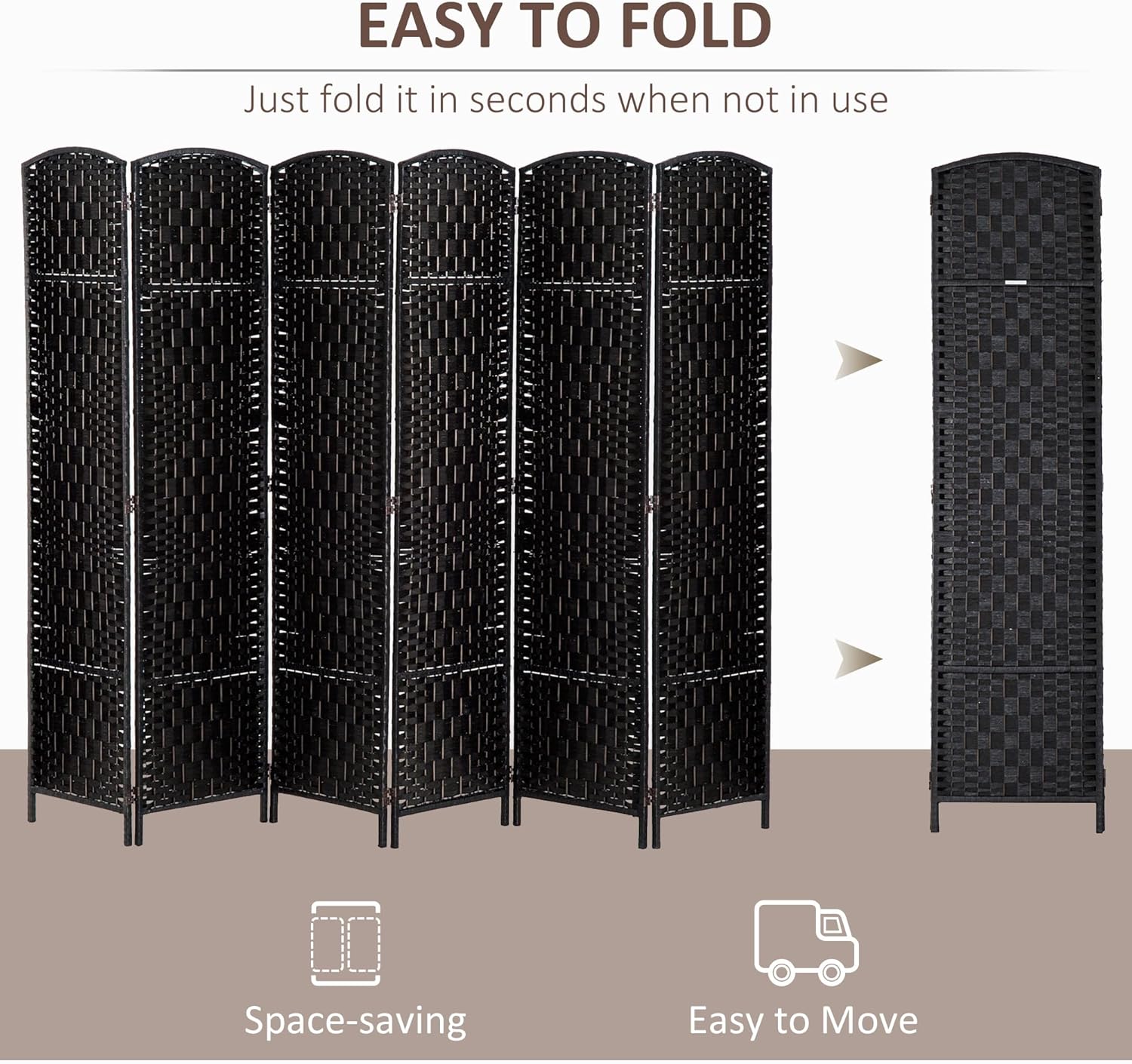 • Artistic Room Divider: Designed with six elegant wicker woven panels and a beautiful arched top, this panel room partition is both practical and fashionable, making a stylish room statement that will complement most room decor