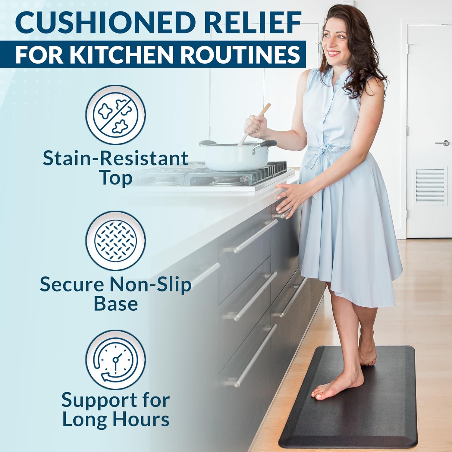 • Slip-Resistant and Stain-Resistant Surface: Stay safe and clean with our anti fatigue mats for kitchen floor that feature a non-slip backing to keep it securely in place. The stain-resistant material is easy to clean and ensures your mat looks new, even with daily use.