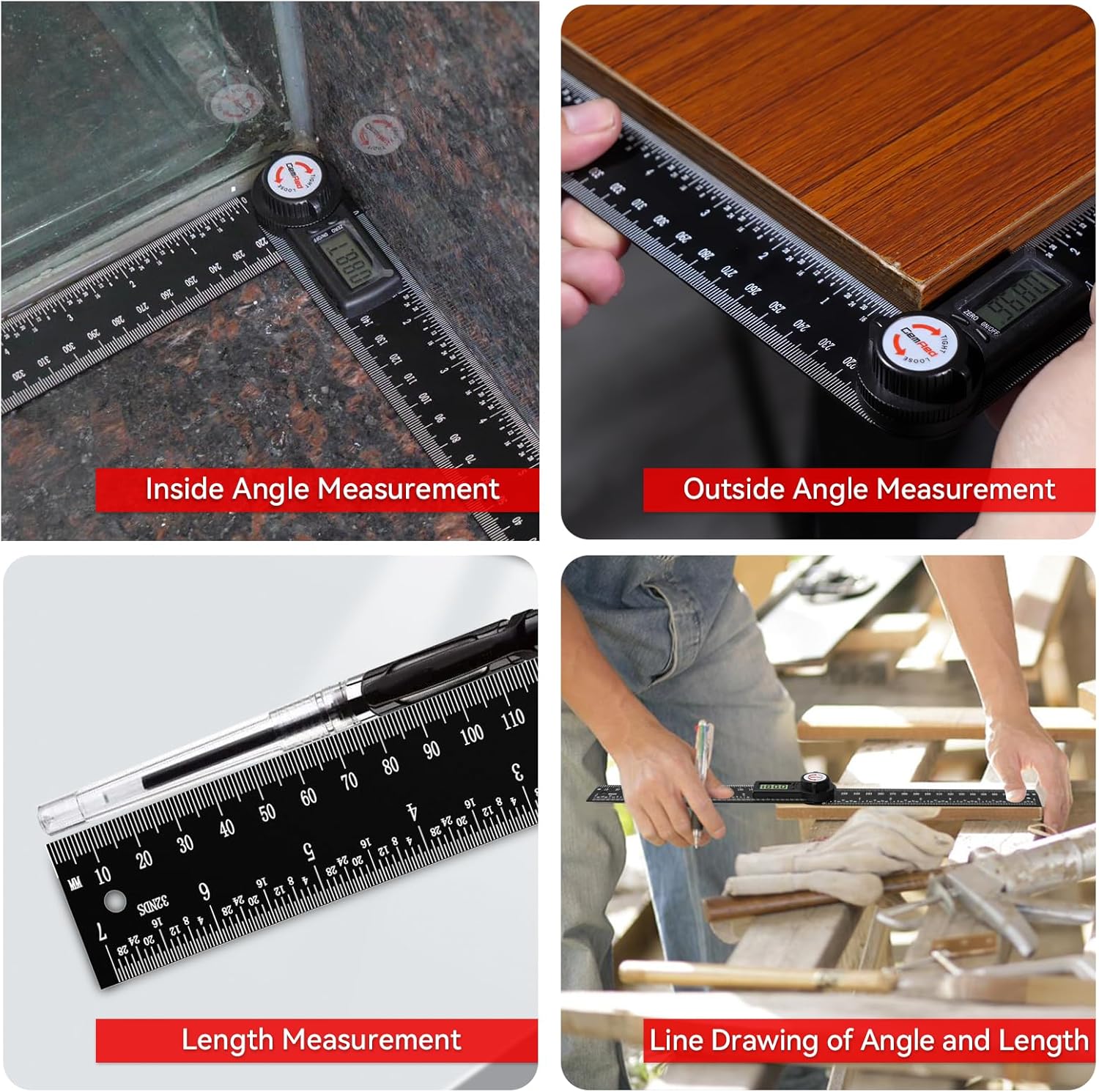 • HIGH ACCURACY -- Accuracy of this protractor is ±0.3 degree. It is a good choice for most projects like woodworking, crown molding and daily use. Folded length: about 7.5 inch/220mm.Total length 400mm.