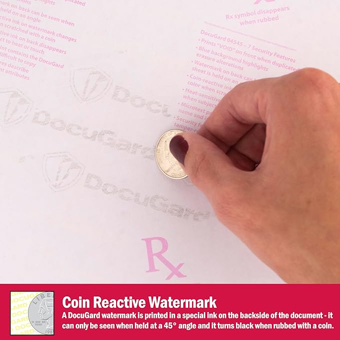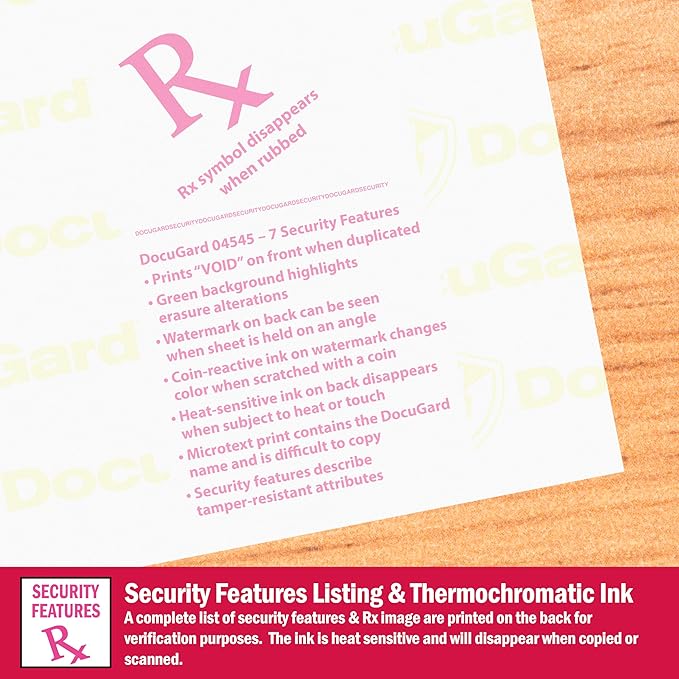 • Fight fraud with DocuGard’s advanced blue security paper that has seven layered features ensuring that your prescriptions and documents cannot be tampered with or accurately duplicated.