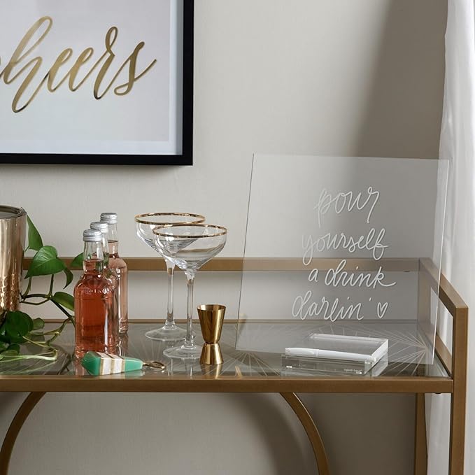 • Sophisticated utility; distinctive yet unassuming 12” by 11. 5” acrylic panel sits at a gentle angle in the 6” deep acrylic base, along with a white dry erase marker